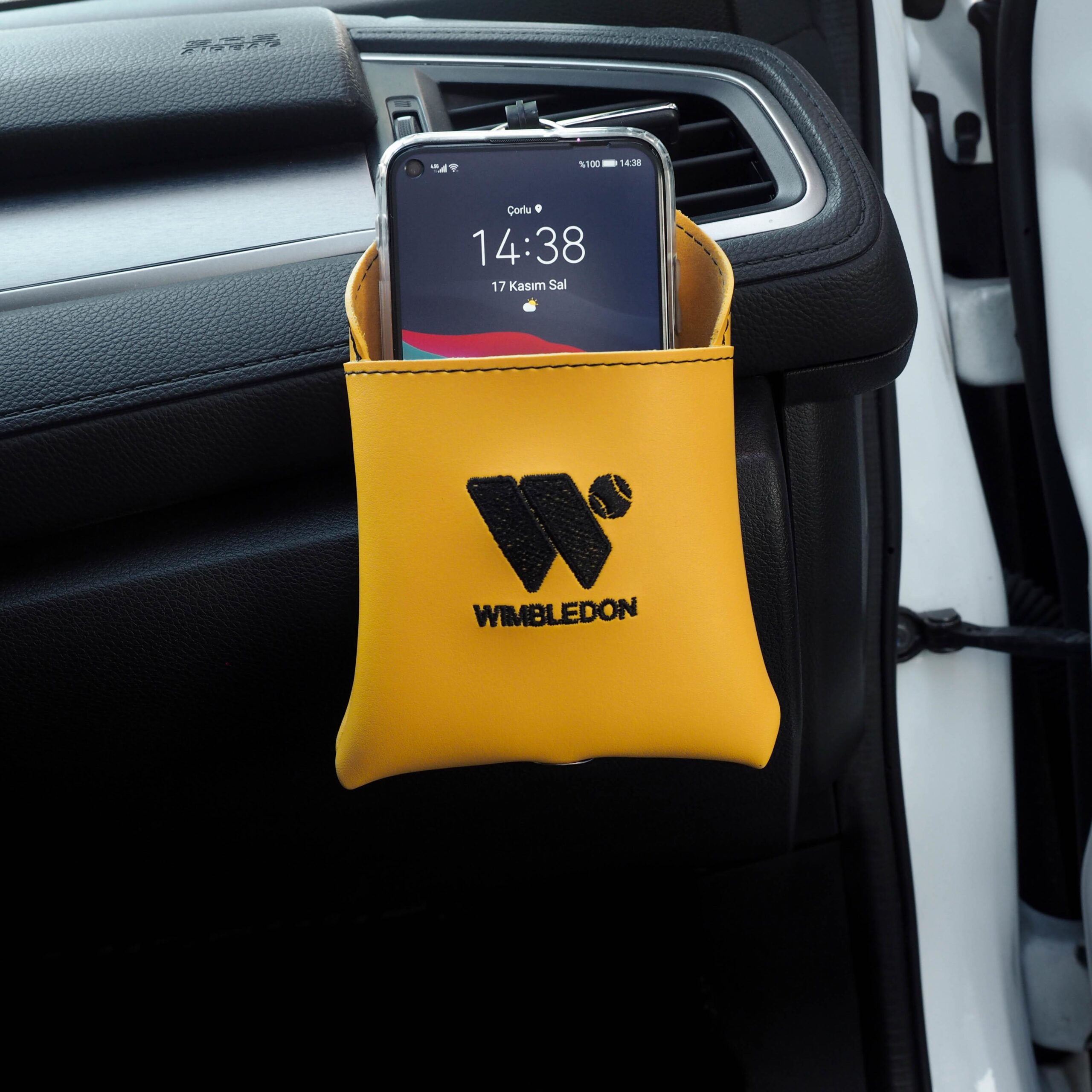 telefon tutucu - Araç İçi Telefon Tutucu - Organizer - Kese / Sarı / 12 CM X 17.5 CM