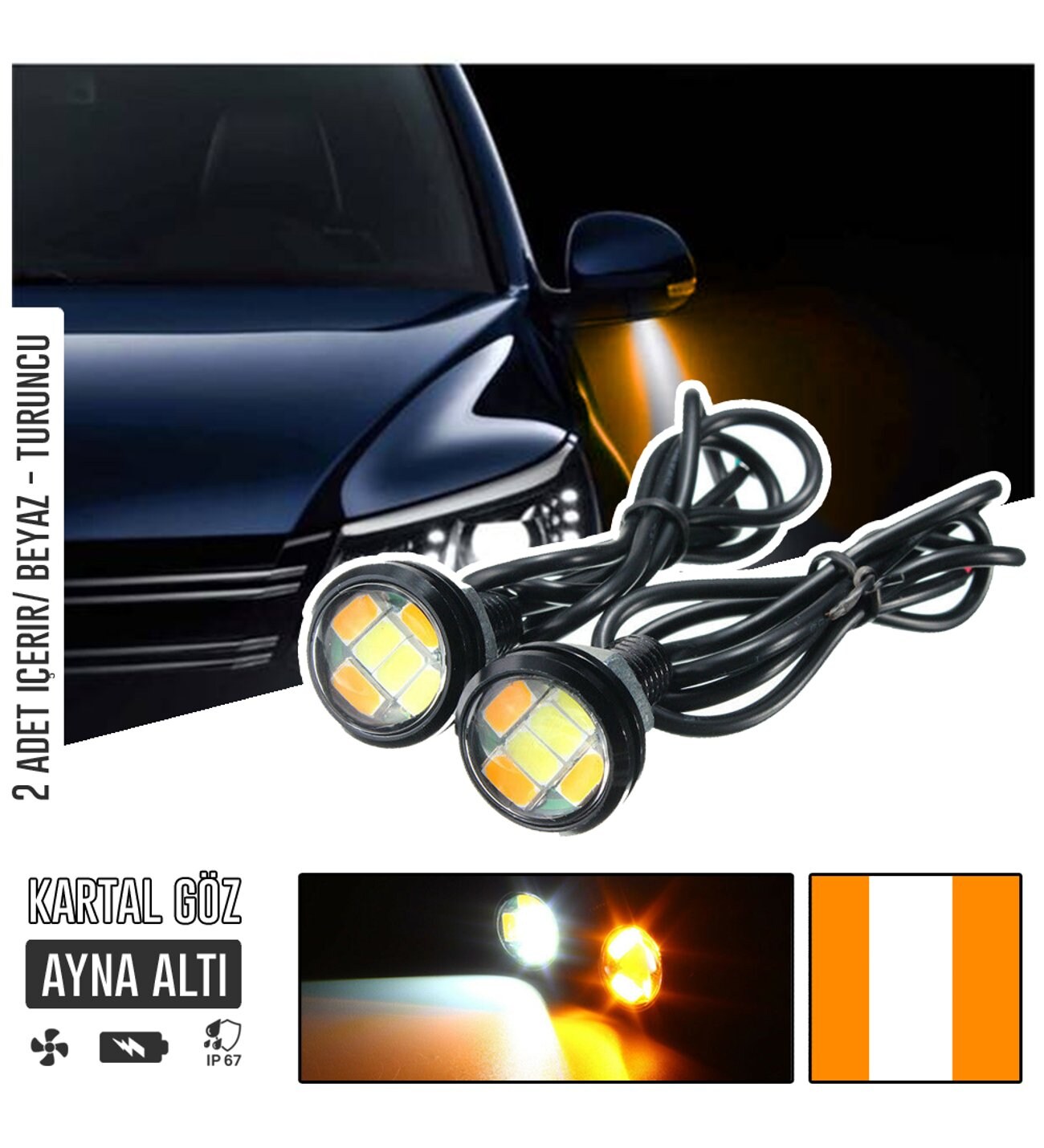 AYNA ALTI KARTAL GÖZÜ LED CİVATALI – BEYAZ + Turuncu