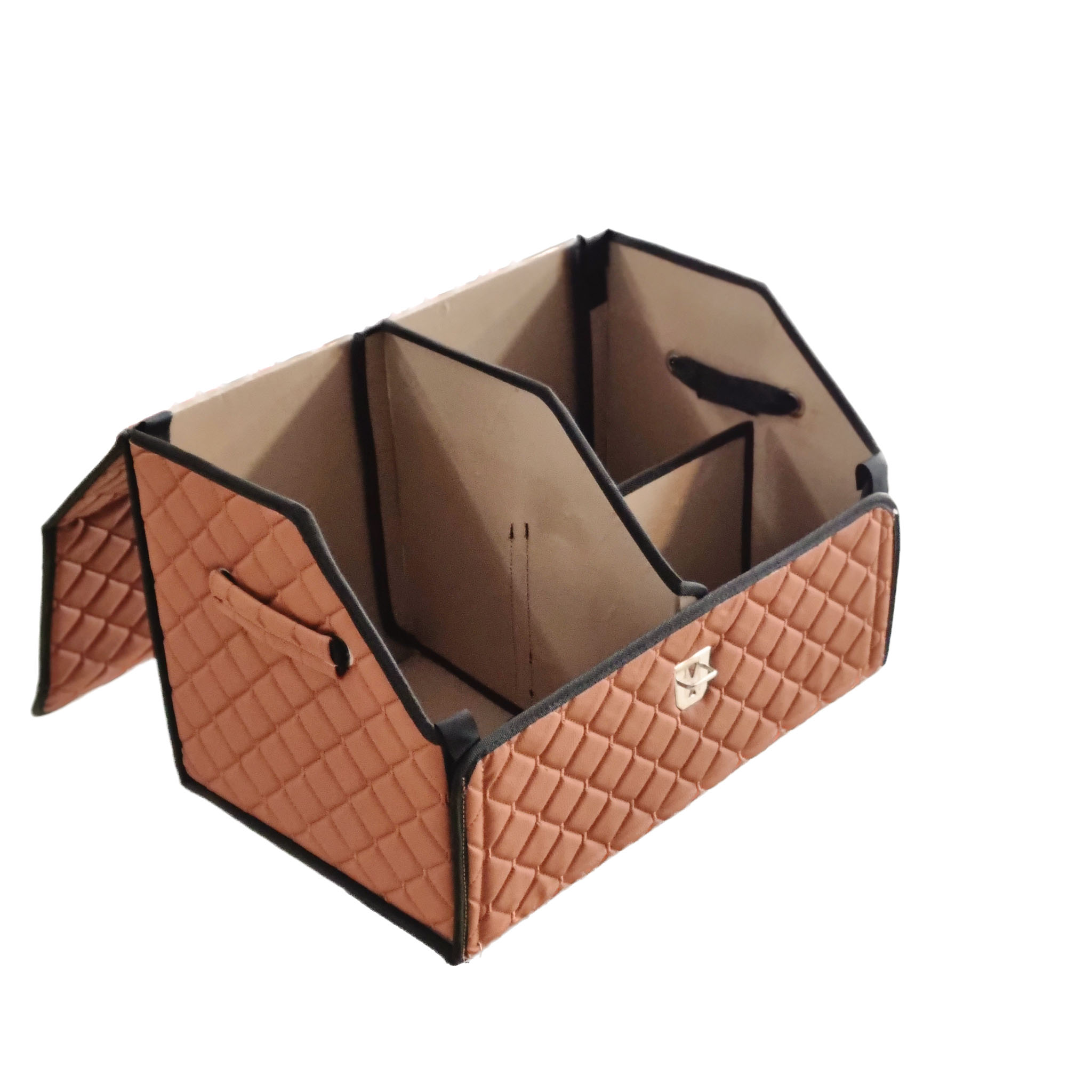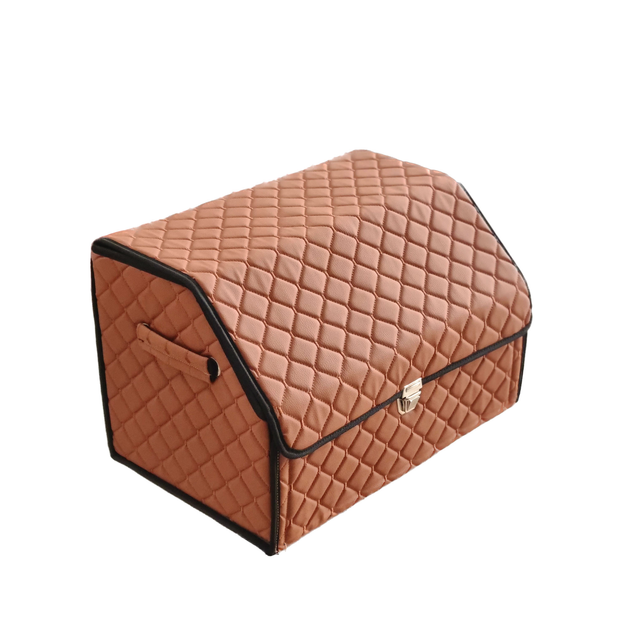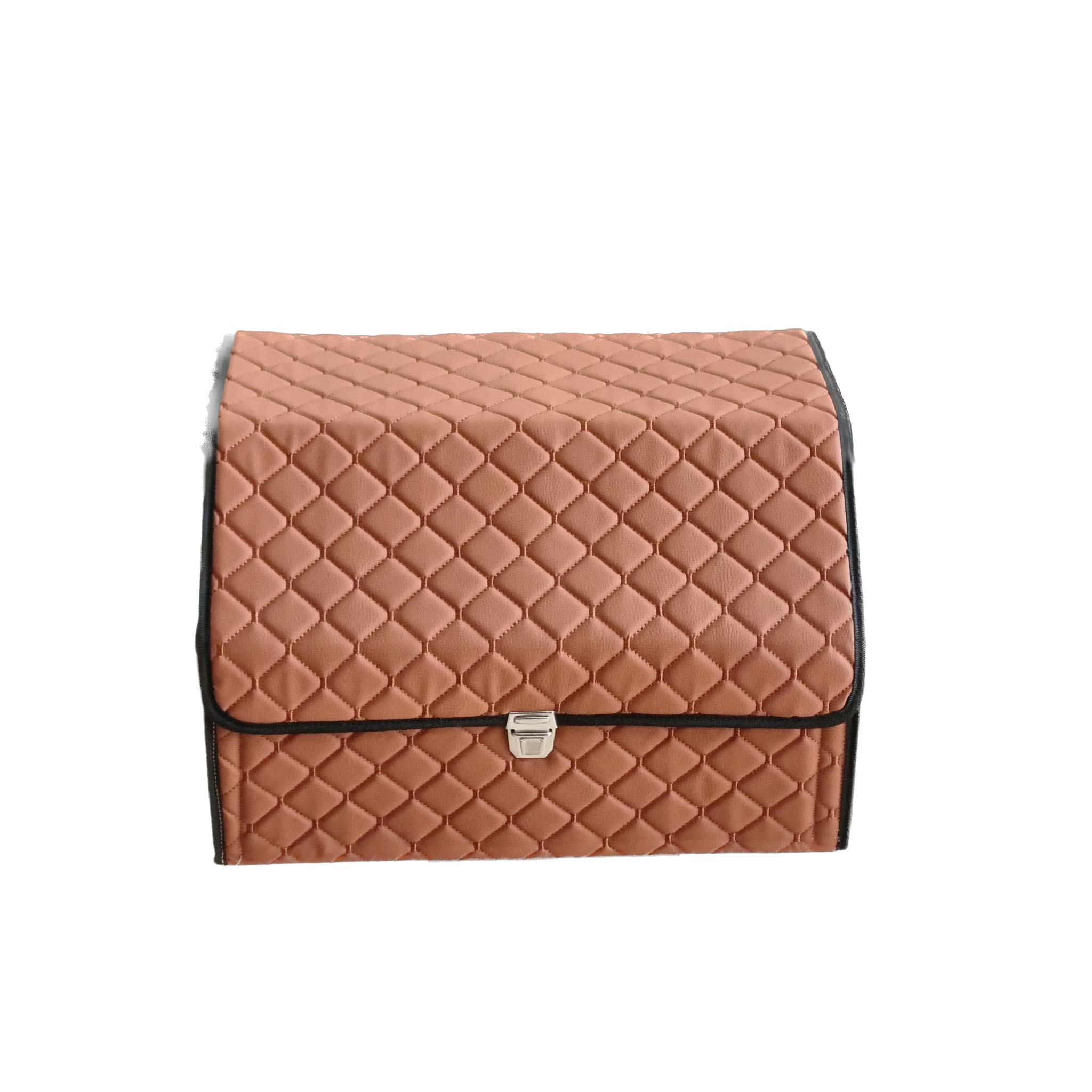 Buda Deri Lüks Oto Araç Bagaj Toplayıcı Organizer, Bagaj Çantası – Nakışlı Taba Siyah Biye