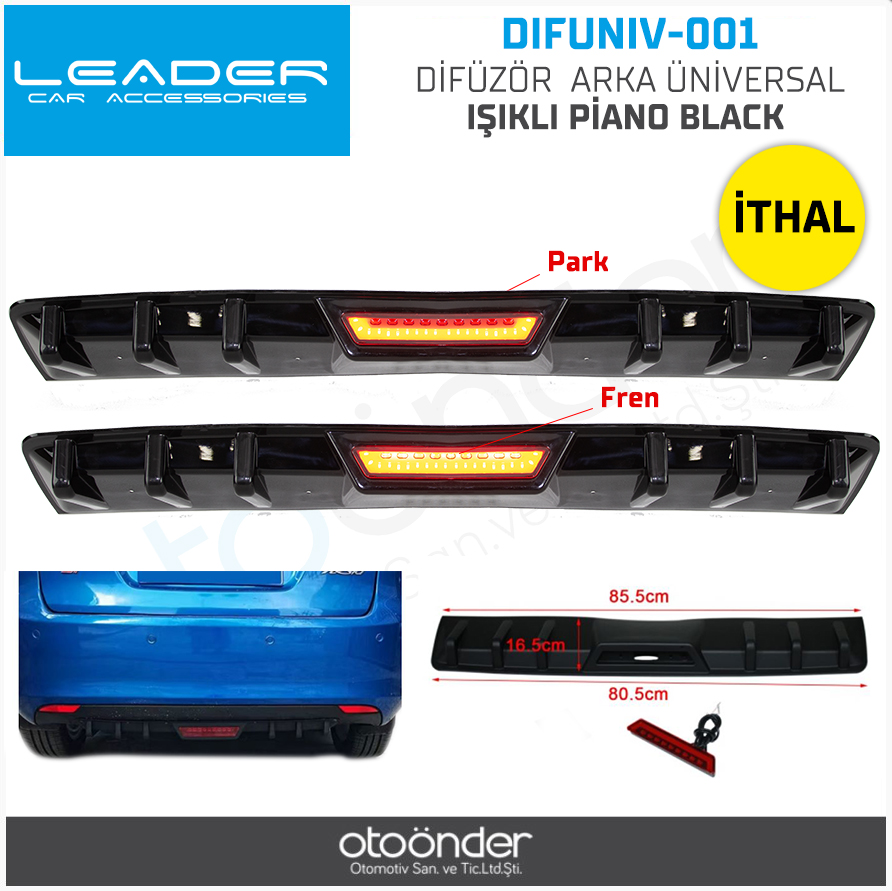 direksiyon kılıfı - Difüzör Arka Üniversal Işıklı Piano Black İthal