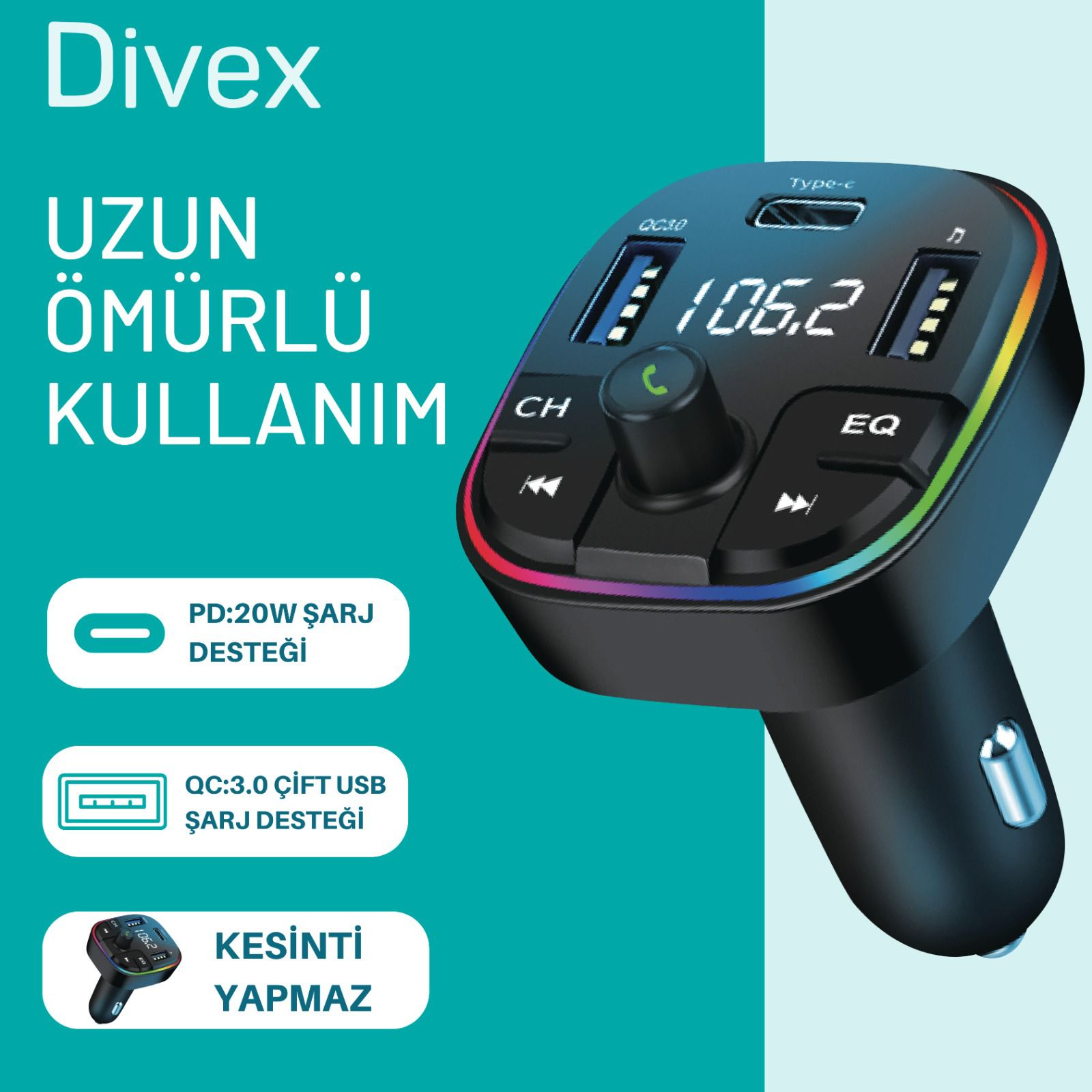 Divex DT-604 - Çift USB Araba Şarj Cihazı, Kablosuz FM Verici, 2 USB Portu Transmitter