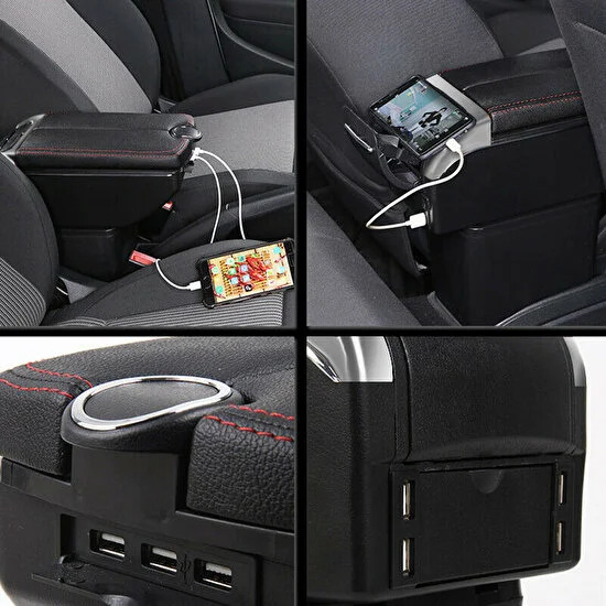 6 USB li Her Araca Uygun Universal Kolçak Kol Dayama Çift Açılır