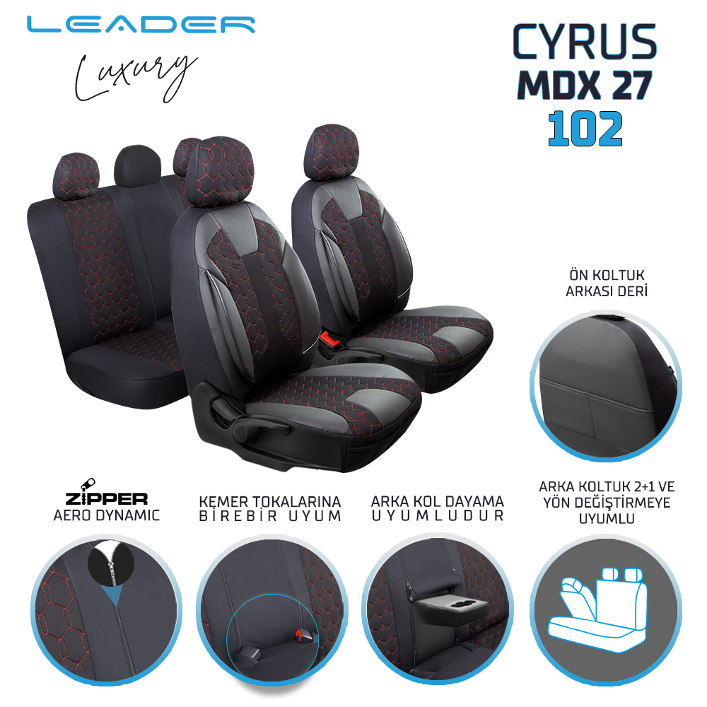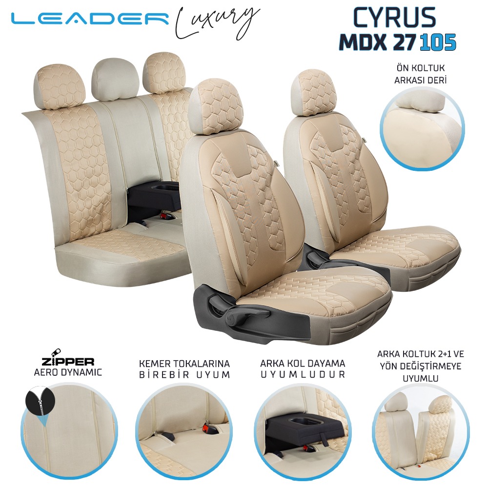 Leader Cyrus Fermuarlı / Universal Oto Koltuk Kılıfı