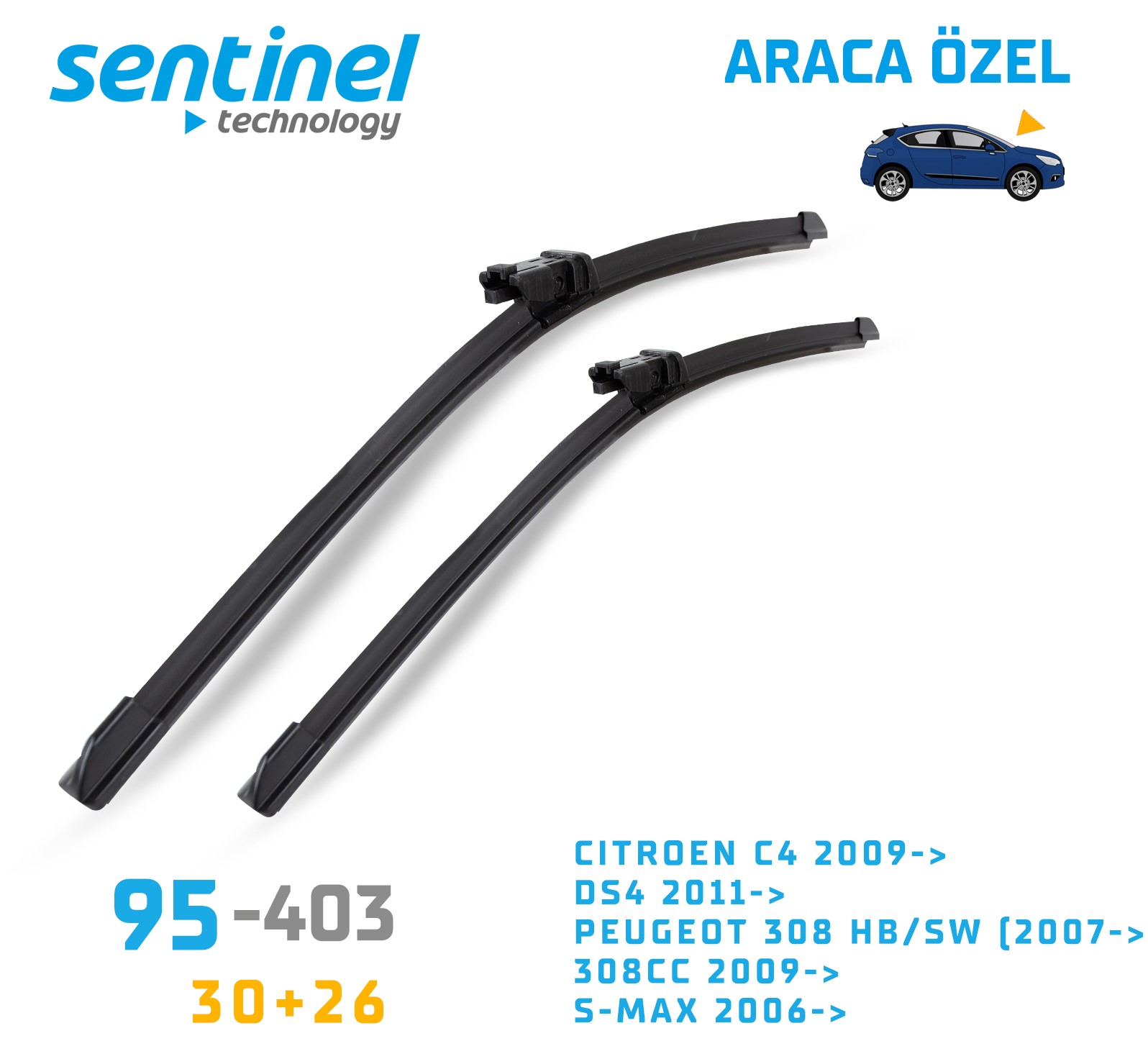 Sentinel ÖN Silecek Takım – Cıtroen C4 2009>>> / DS4 2011>>> / Peugeot 308 HB/SW 2007>>> / 308cc 2009>>> / S-Max 2…