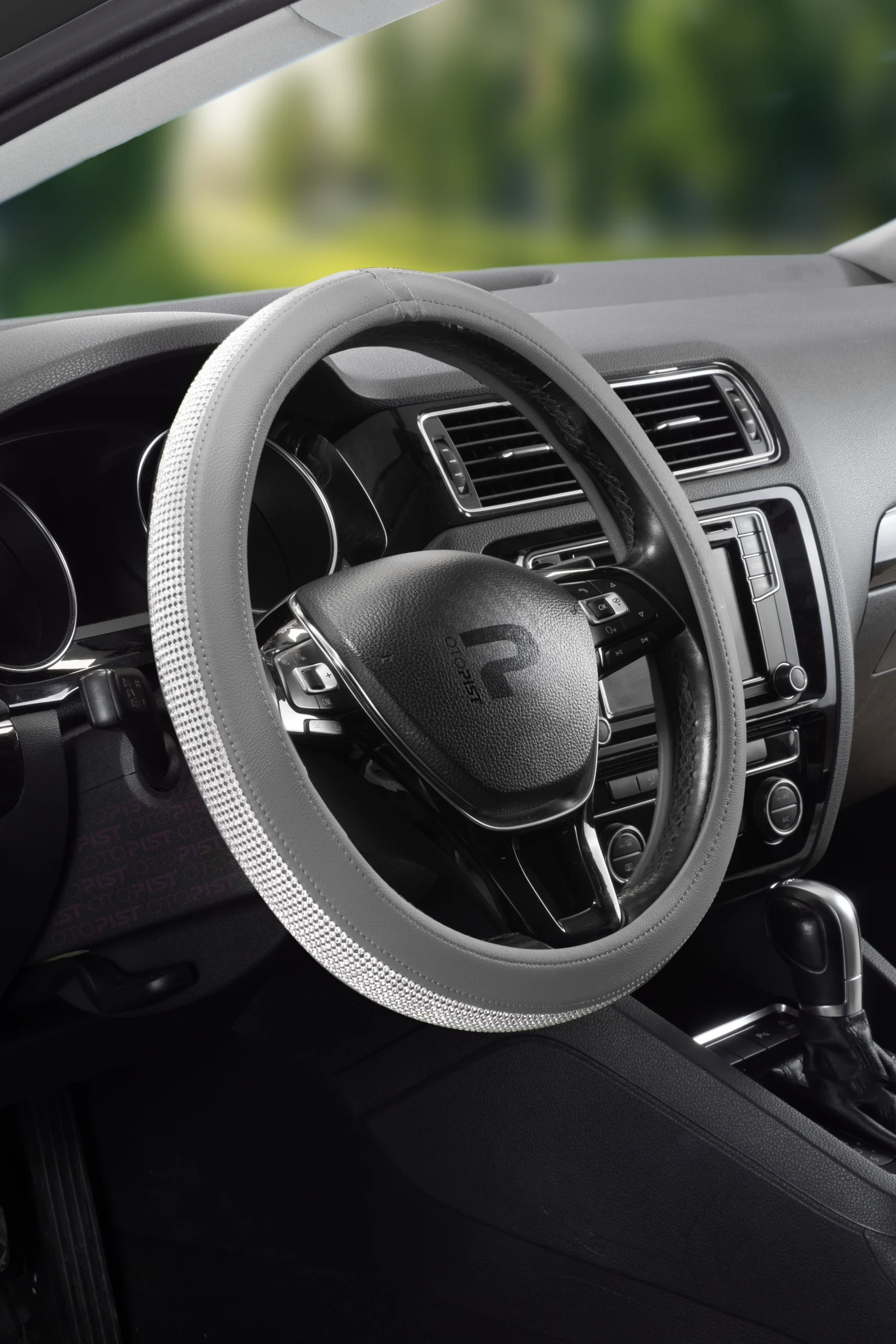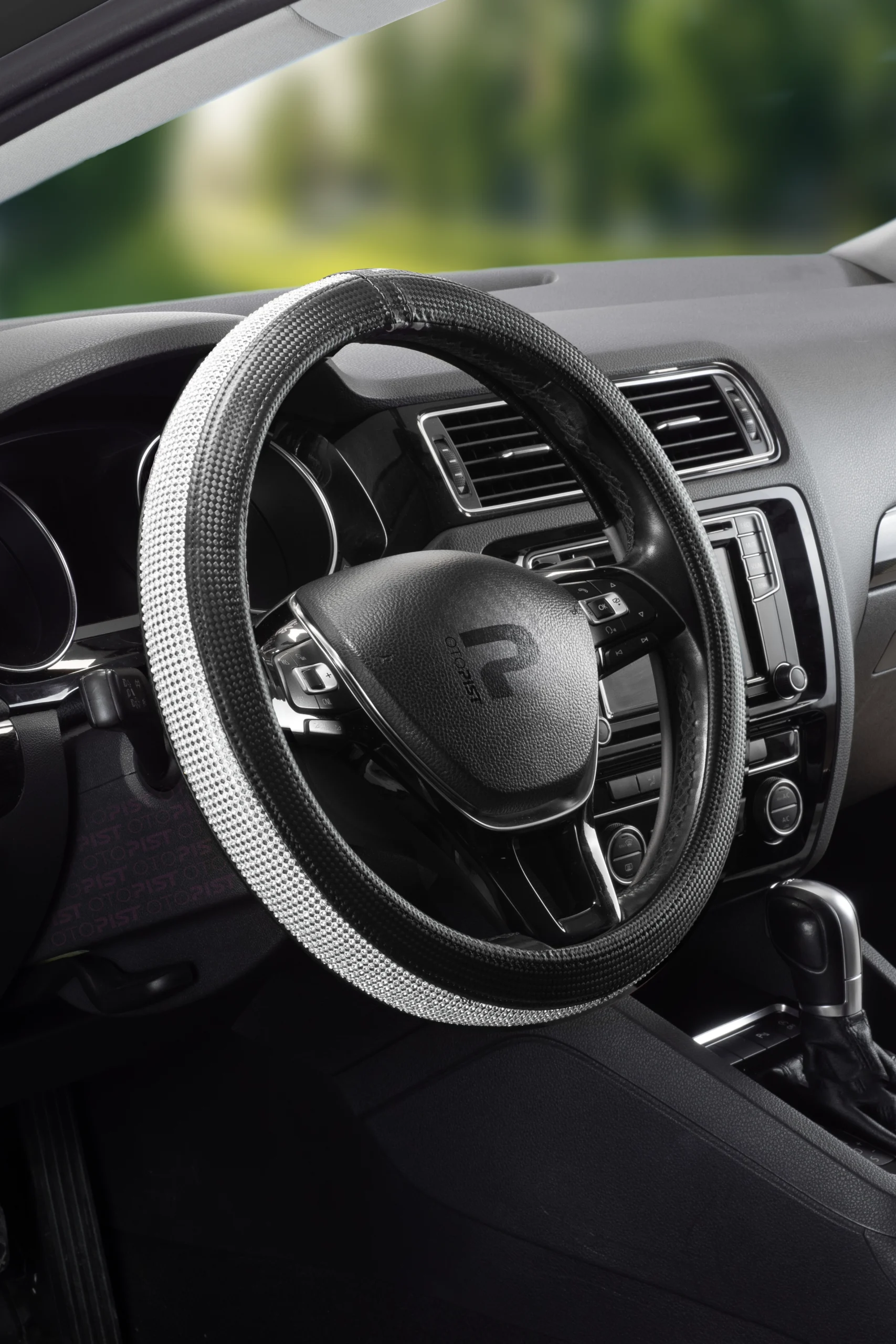 Lüks Pırlanta Detaylı Geçmeli Direksiyon Kılıfı ile sade ve sofistike bir tarzı yakalayabilirsiniz.