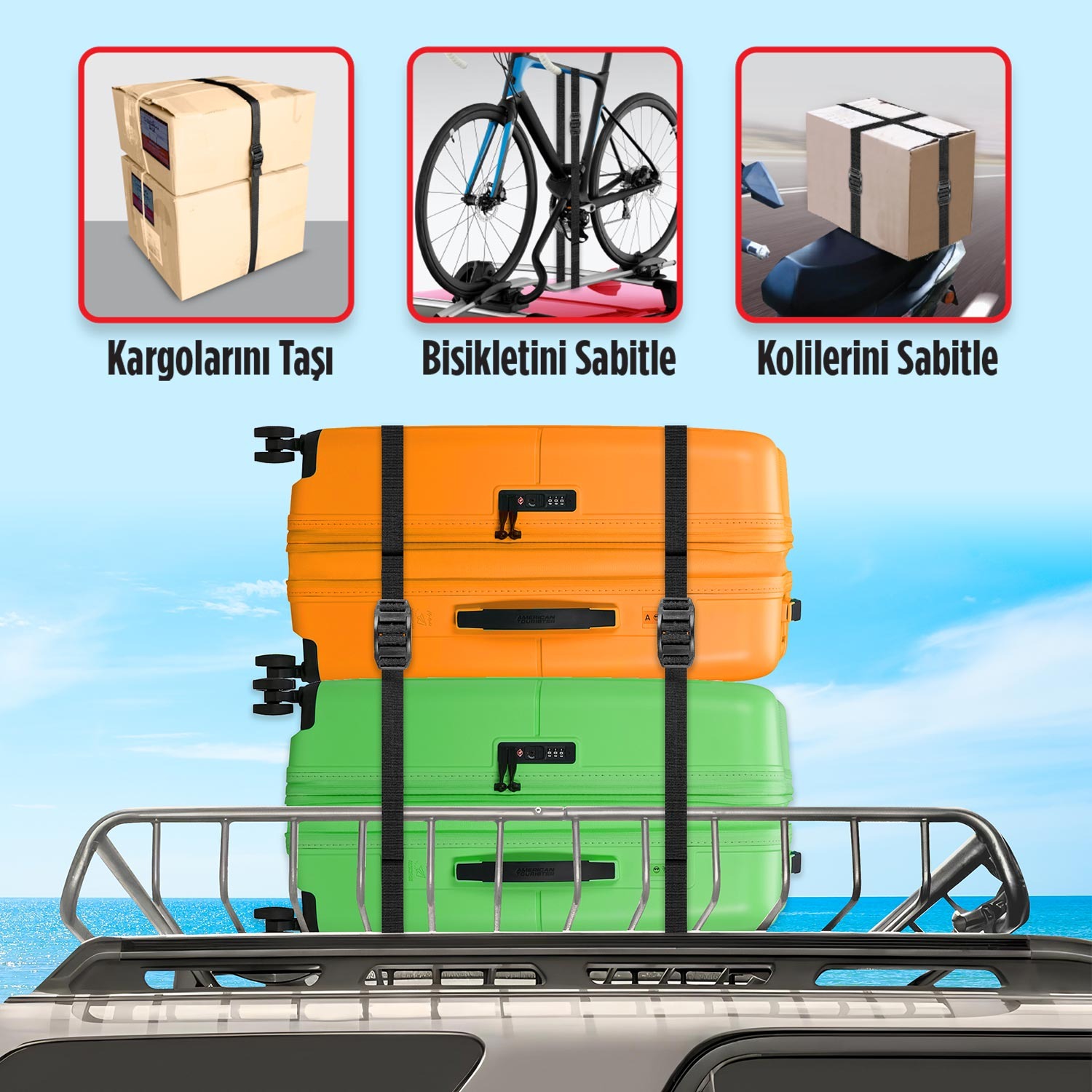 Örneğin, kayak, sörf tahtası veya bisiklet taşıma esnasında güvenli bir sabitlerme sağlar.