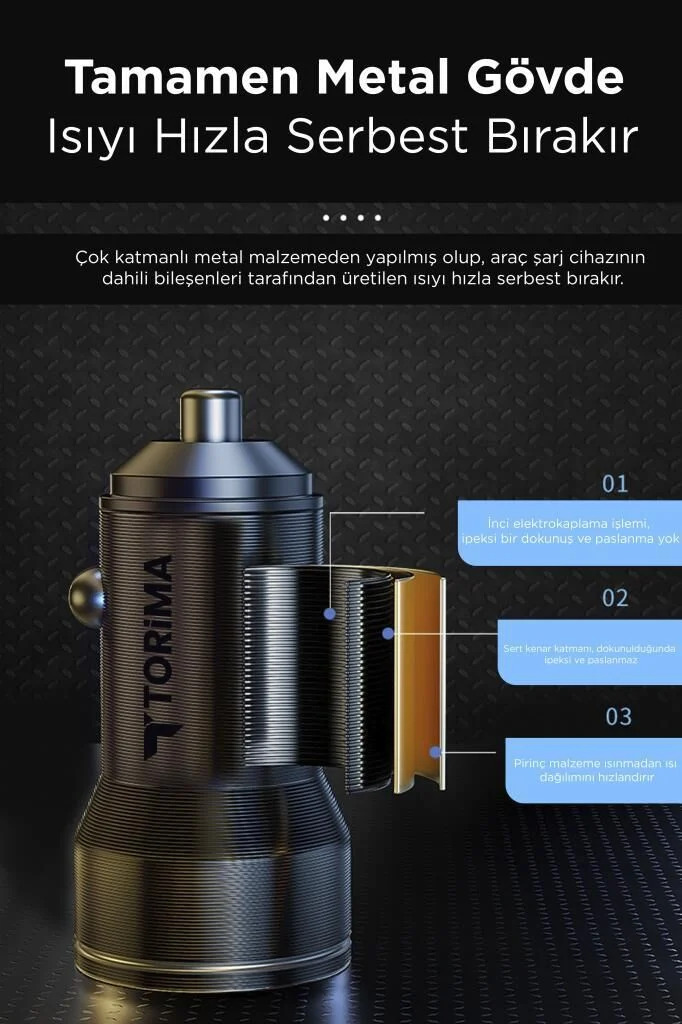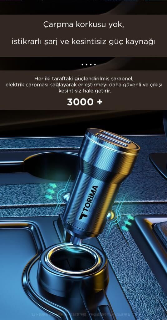 Torima C01 Siyah 2 USB Portlu Araç Şarj Cihazı ile yolda giderken elektronik cihazlarınızı hızlı ve güvenli bir şekilde şarj edebilirsiniz. Çift USB girişi sayesinde aynı anda iki cihazı şarj edebilirsiniz.