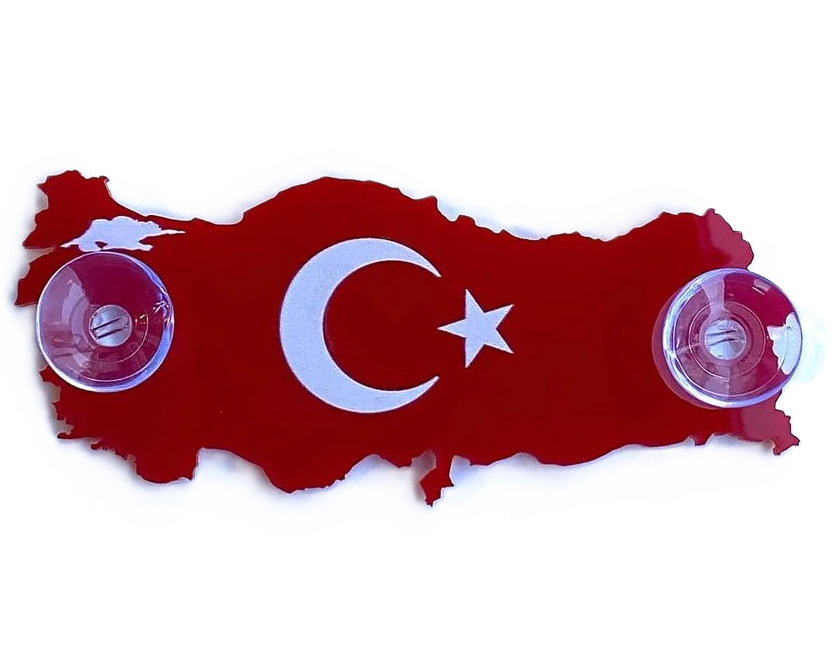 Türkiye Haritası Ay Yıldız Bayrak Kırmızı Vantuzlu Pleksi Cam Süsü / 15 Cm