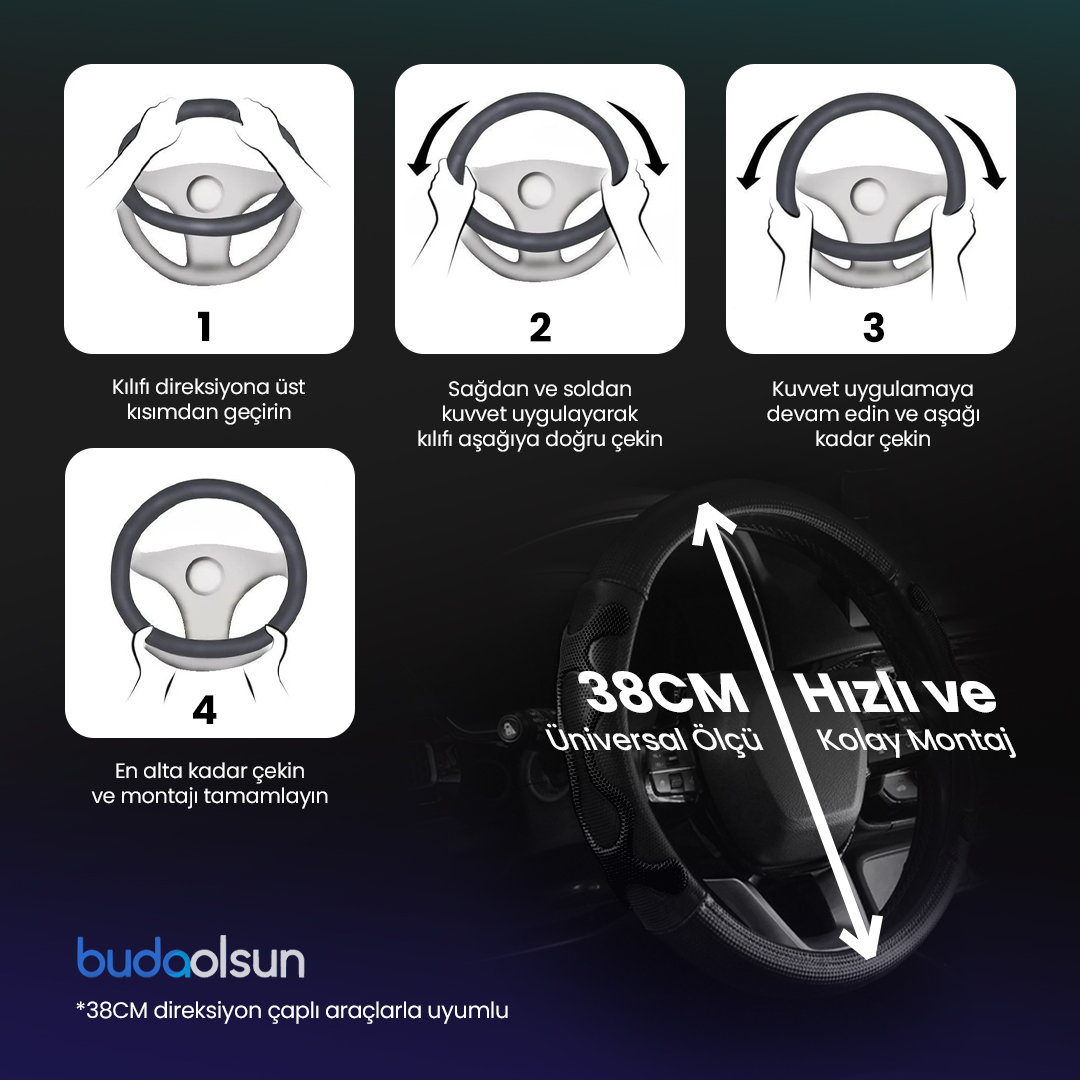 • Üstün Kalite ve Konfor: Yüksek kaliteli malzemeden üretilen direksiyon kılıfımız, sadece şık değil, aynı zamanda dayanıklı ve konforludur. Yumuşak dokusu, uzun yolculuklarda bile ellerinizi rahat ettirecek ve sürüş keyfinizi artıracak.
