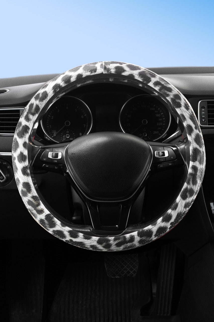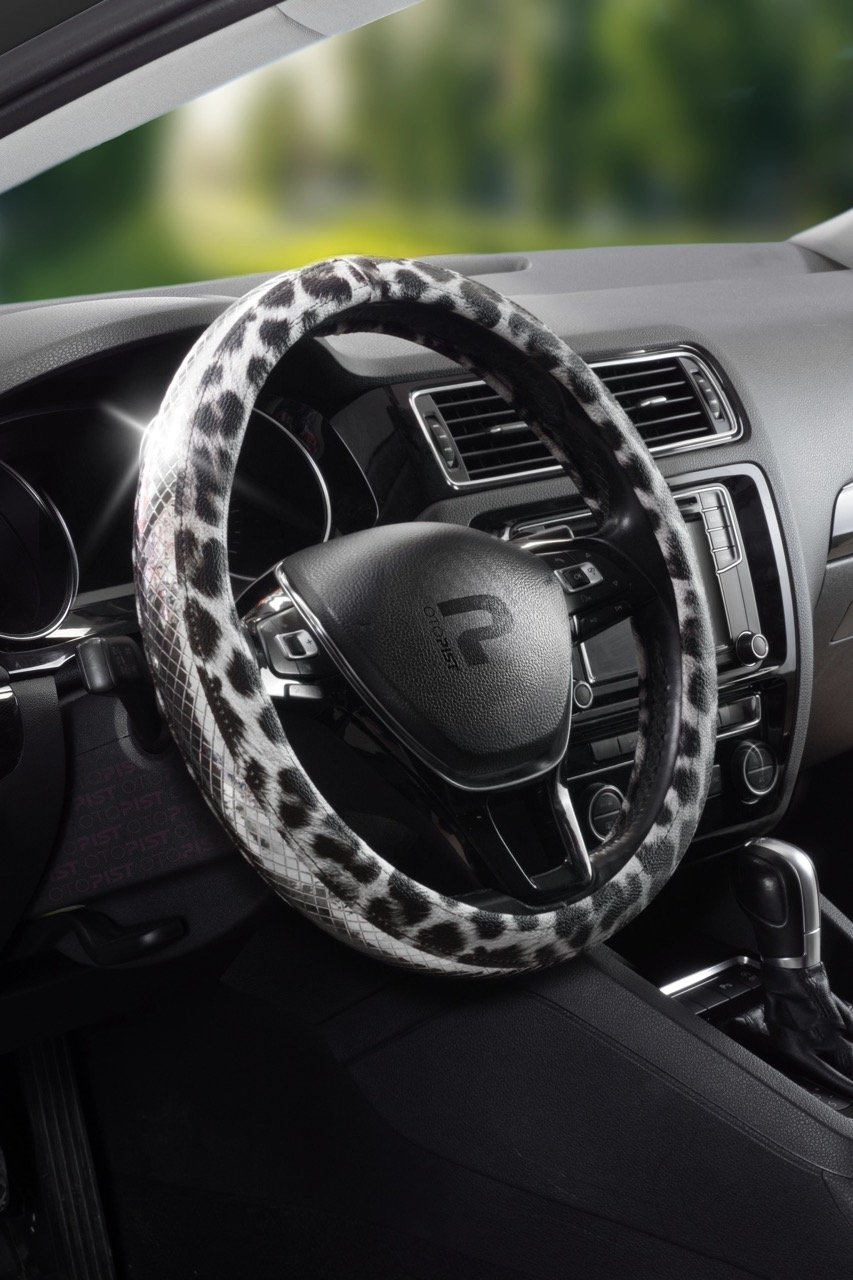 Wimbledon Kadınlara Özel Gümüş Parlak Dokulu Leopar Desenli Direksiyon Kılıfı